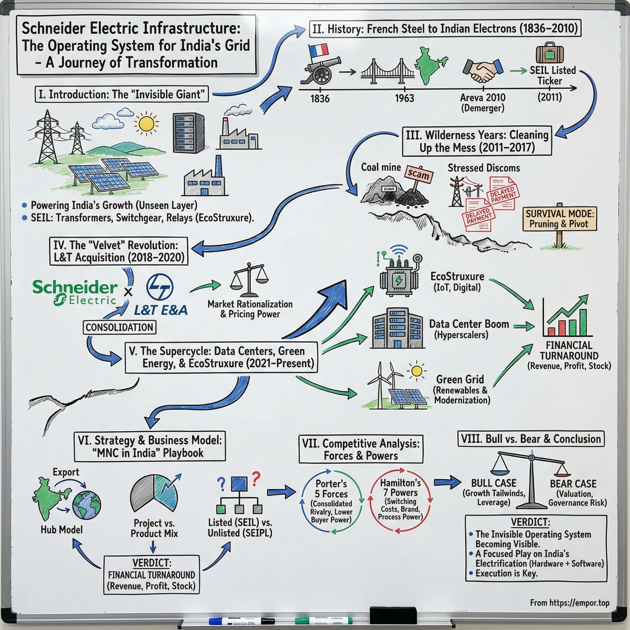For L&T—India’s iconic engineering and construction powerhouse—it was a strategic exit from a unit that no longer fit where the group wanted to go. For Schneider, it was a land grab: scale, distribution, installed base, and a deeper lock on the electrical “plumbing” of India’s industrial economy.