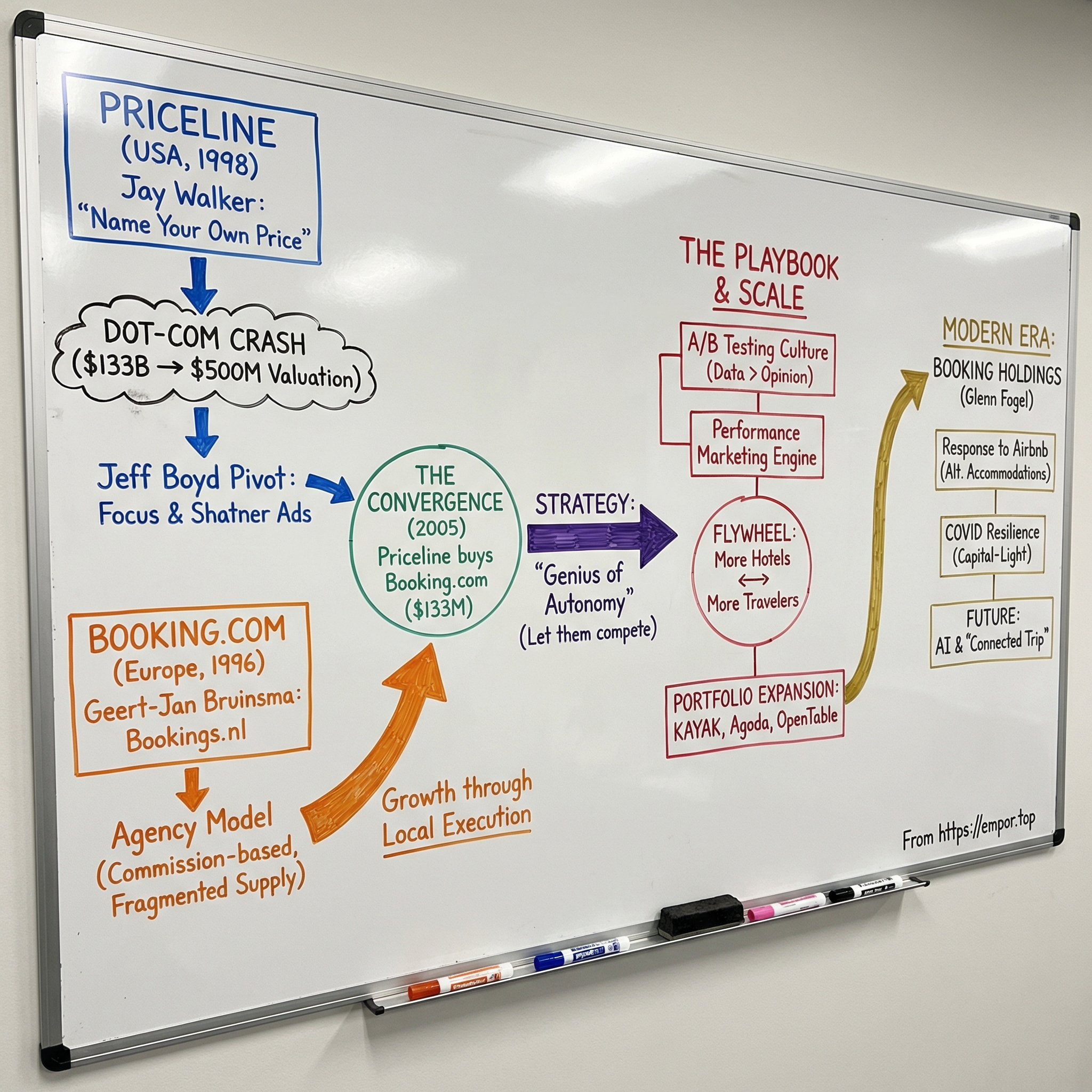 Key sources: - “The Early History of Booking.com” (industry histories and recollections from former employees) - Interviews with Glenn Fogel, CEO, Booking Holdings - Acquired.fm episode archives on travel and marketplace businesses