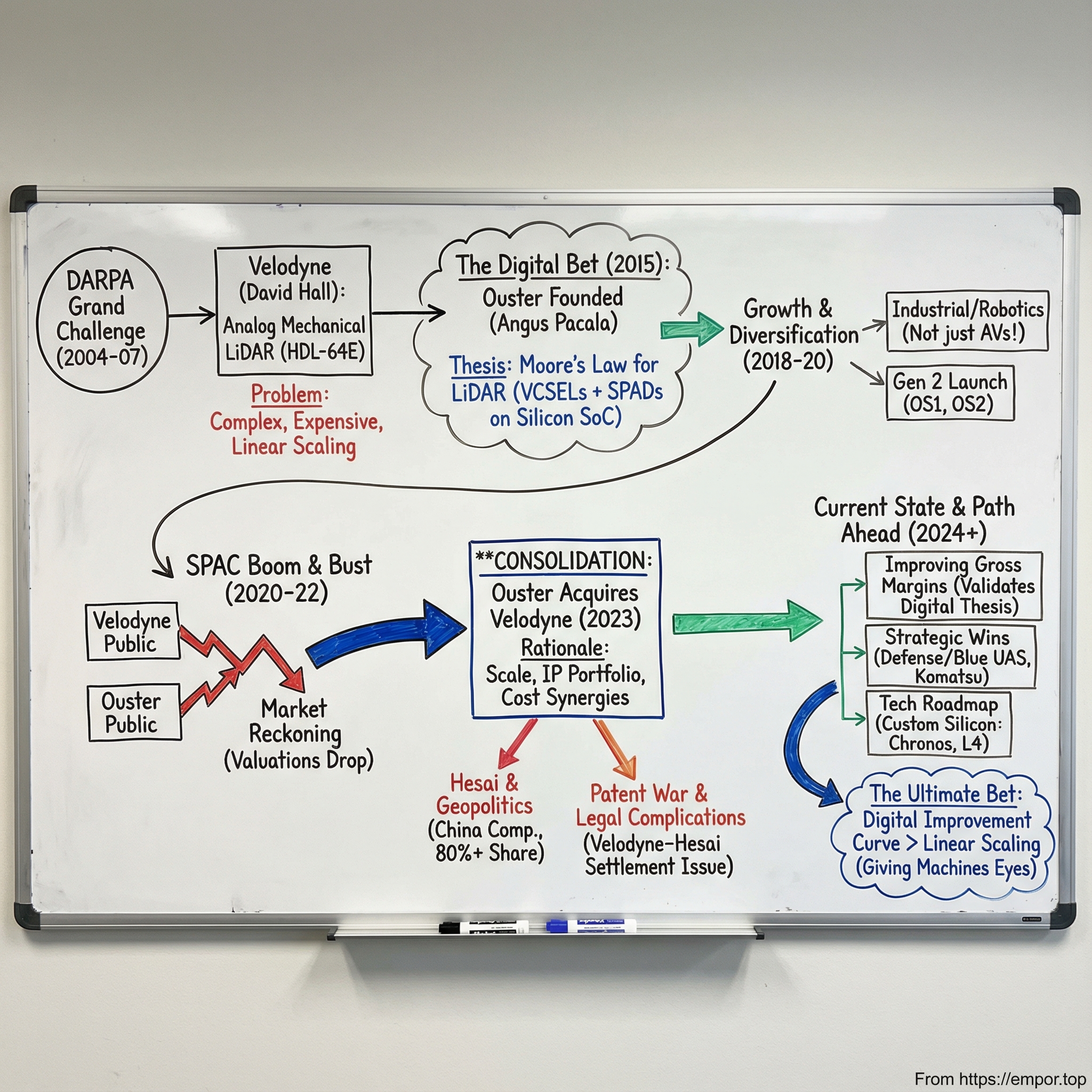 That’s the wager: that digital lidar follows the same trajectory as digital cameras, and Ouster is the company positioned to ride that curve into leadership. It’s a classic technology-market bet—exponential improvement beating linear optimization.